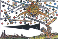 More wheels! This picture shows a UFO sighting over Hamburg, Germany 4 November 1697. The objects were described as "two glowing wheels".