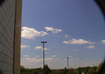 Here is shot one. It could not have been higher than a airplane you'd see on any day. I was not zoomed in at all. I didnt catch sight of it in my viewfinder (like I said, I was shooting clouds) After this shot, I dropped my camera, and looked at the preview window. As I went back up to shoot, there it was. To be honest in a couple of these shots, I could not see it very clearly, it was very shiny, and I guess it took on a lot of the sky color. I shot some with both eyes open. In this shot it was not moving. The edges are from the UV and haze filters on the camera, which I was using the weekend before. Unfortunately they show up on the still cam, but not the video.