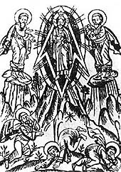 This is a 15th century fresco from Kiev. Seems to show Jesus in a rocket type device.