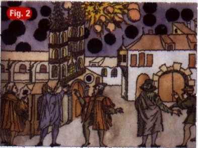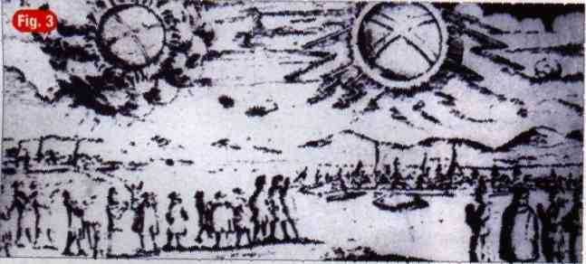 More wheels! This picture shows a UFO sighting over Hamburg, Germany 4 November 1697. The objects were described as "two glowing wheels".