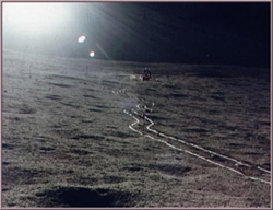 1971, Apollo 15. This photograph is from NASA, and some say we are looking at a UFO on the Moon at the time of Apollo 15 mission. Reference: NASA AS15-85/08. This bluish light mass has been explained as either debris from the capsule or some camera anomaly. Still, a very good picture, and quite a conversation piece.