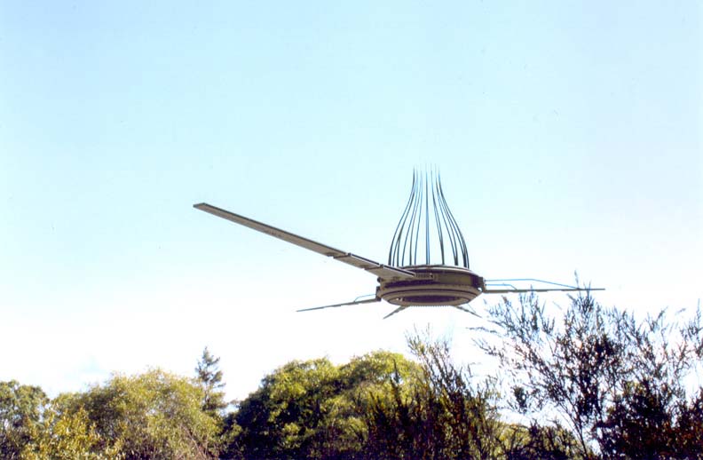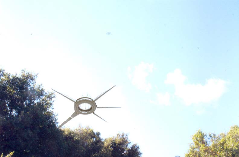 Last month (April 2007), my wife and I were on a walk when we noticed a very large, very strange "craft" in the sky. My wife took a picture with her cell phone camera (first photo below). A few days later a friend (and neighbor) lent me his camera and came with me to take photos of this "craft". We found it and took a number of very clear photos. Picture #4 is taken from right below this thing and I must give my friend credit as I was not brave enough to get close enough to take this picture myself!