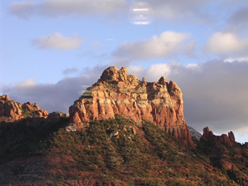 It’s been authenticated by a local Sedona expert who has written numerous books, appeared on TV, radio, etc. He is a world renown expert on UFO’s and the paranormal. Although his analysis is inconclusive on the objects in the sky (most people are convinced these are just reflections of some kind) he feels the object on the rock is of extremely paranormal nature. Or that it was a paranormal phenomena that was “underway”. He has called the photograph “World Class.” He also mailed me a photo which has been published and studied by experts worldwide. It was taken in Boynton Canyon in 1990 and it’s also published in one of his books. The object in that photo is extremely similar in shape to the one in this photograph. The expert who authenticated my picture states that the Boynton Canyon photo validates my photo. He does not know what the object is, a ship? Perhaps?